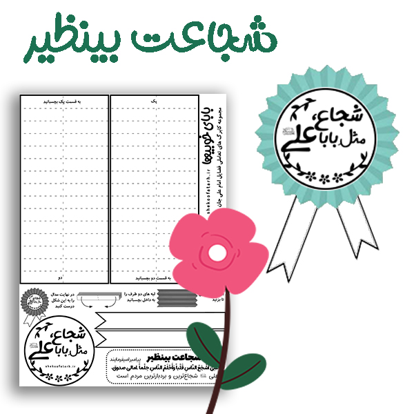 🪁 کاربرگ تعاملی کار با چسب و قیچی سه تا از فضایل امام علی